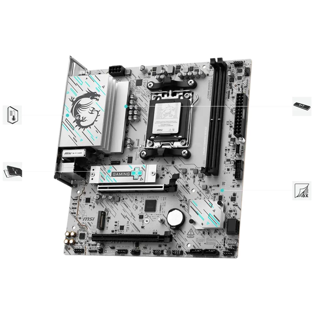 Compatível com processadores AMD Ryzen séries 7000, 8000 e 9000, a MSI B840M Gaming oferece alto desempenho com suporte a memória DDR5 até 128GB (OC até 8000MHz), interface PCIe 4.0 x16 para placas de vídeo e armazenamento NVMe com 2 slots M.2.